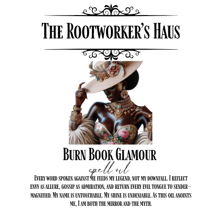 When Mean Girls Day meets real rootwork, you get Burn Book Glamour, an advanced mirror oil crafted for those who don’t just want to outshine the gossip, but reflect it straight back to sender. This is not self-love. This is not for beginners. This is high-caliber conjure for the main characters, the power players, and anyone bold enough to let their name ring out with legend.